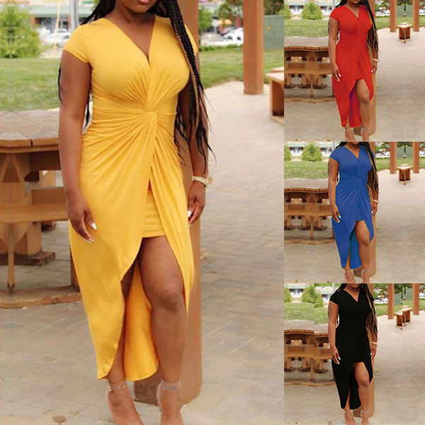 You look so sexy and seductive when you wear this dress. Solid color style,its stunning details like v-neck,slit hem and twisted design at front side make this piece look so alluring and distinctive. No matter when and where you are,you can easily be the focus as long as you don this dress.