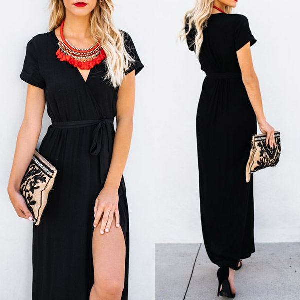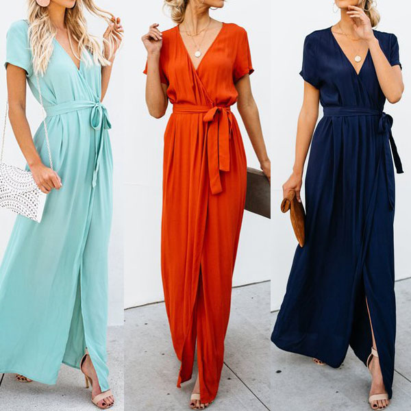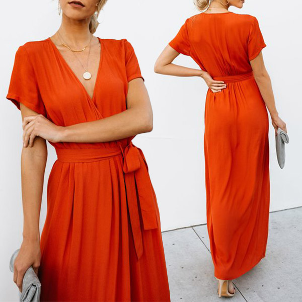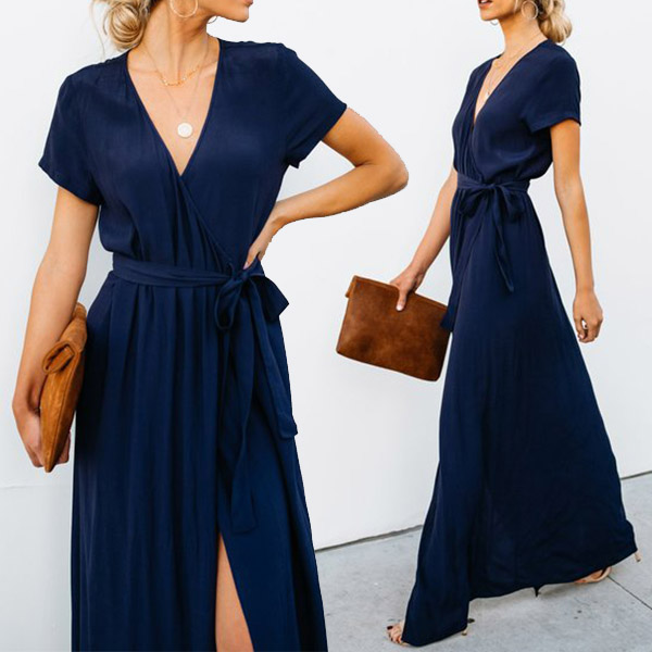 Beautiful dress always can easily improve your temperament.Solid color style,with short sleeve and