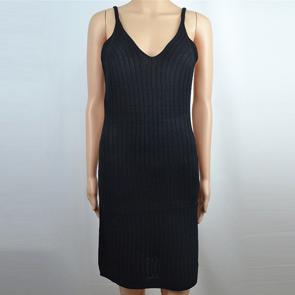 you this knit dress. Provided with soft and breathable knitted fabric,this sling and v-neck design can