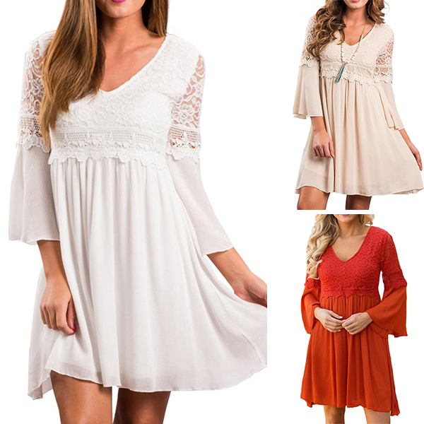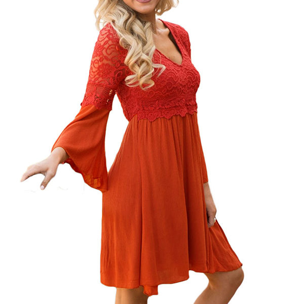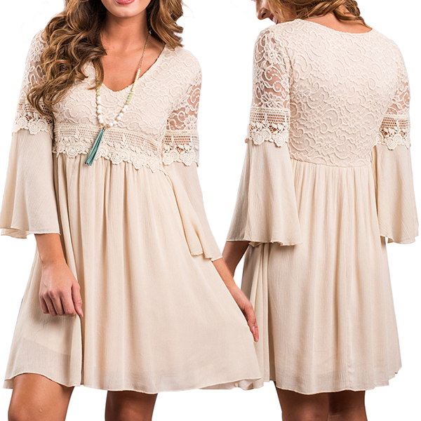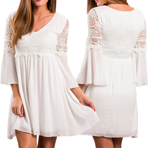 trumpet sleeve and lace spliced design make this piece look so sexy and charming. Simply need to match with your