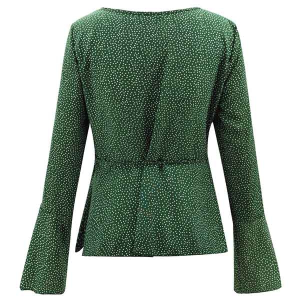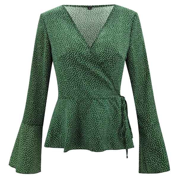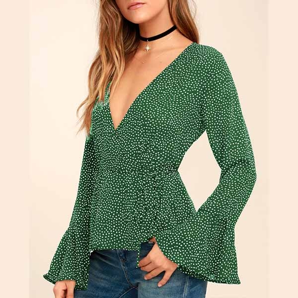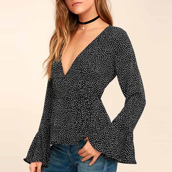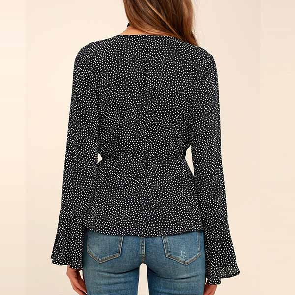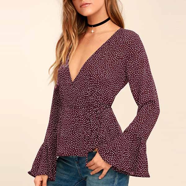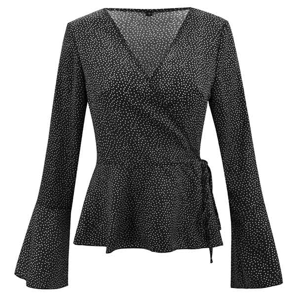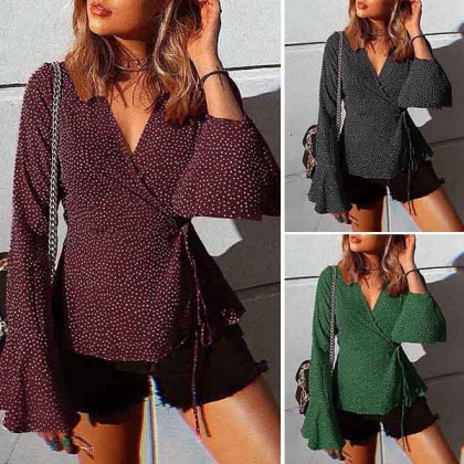 the v-neck and trumpet sleeve design will enhance your feminine appeal. And the lace-up design at the