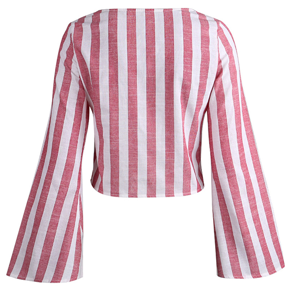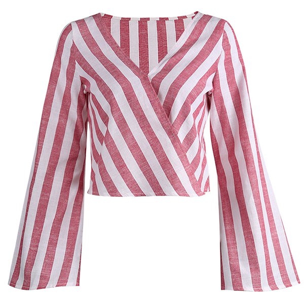 Boost your daily style with the help of this blouse. Striped style,comes with trumpet sleeve and v-neck design,