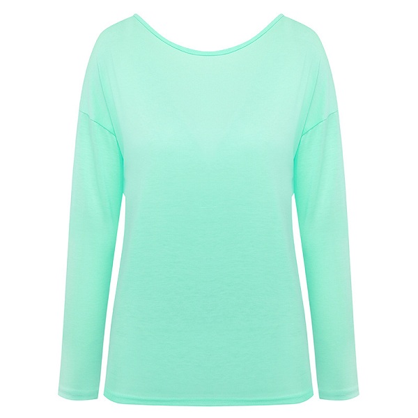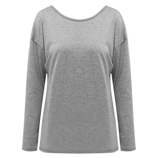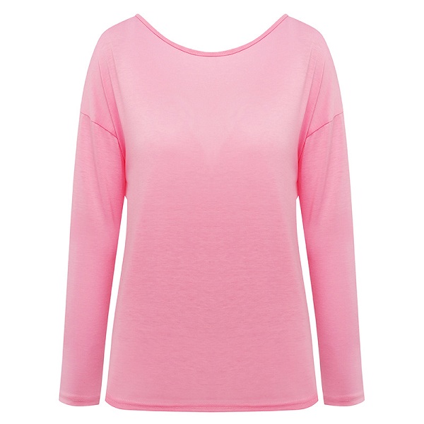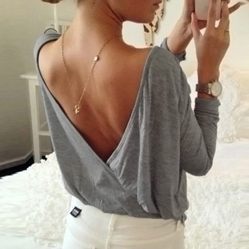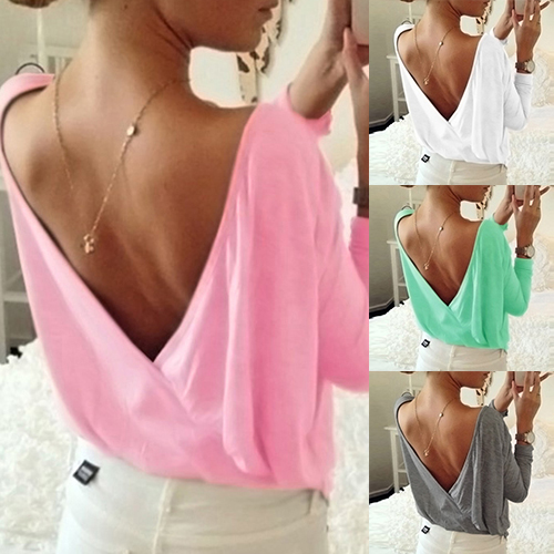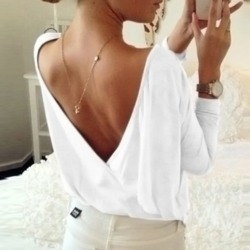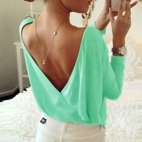 Add a touch of feminine flavor to your wardrobe ensemble with this long-sleeved top. Solid color style,its v-shaped backless