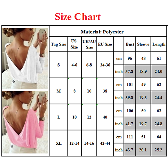 L : Bust : 106cm(41.73"); Sleeve : 50cm(19.69"); Length : 63cm(24.8");