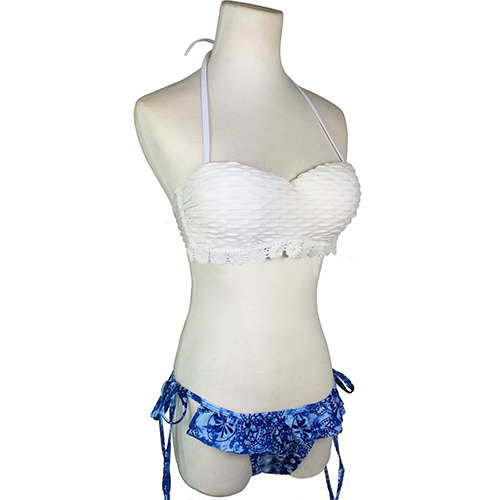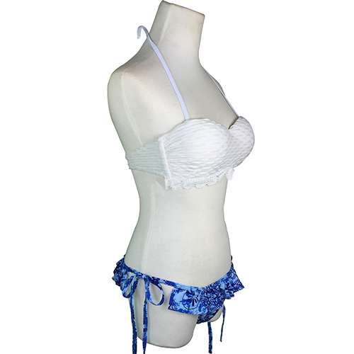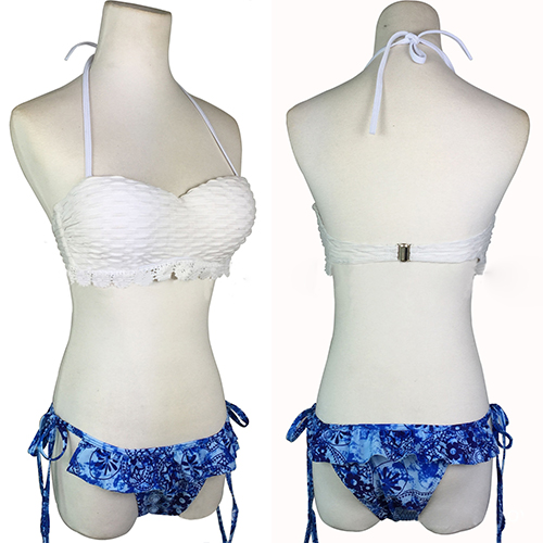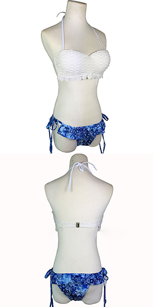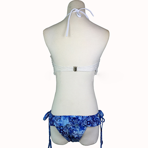 Including a white halter bra and a printed low-waist briefs,this bikini set is designed to show off your seductive curve and sun-kissed skin.