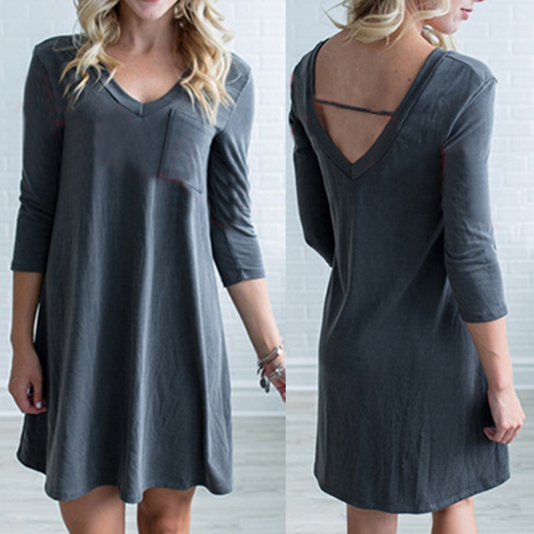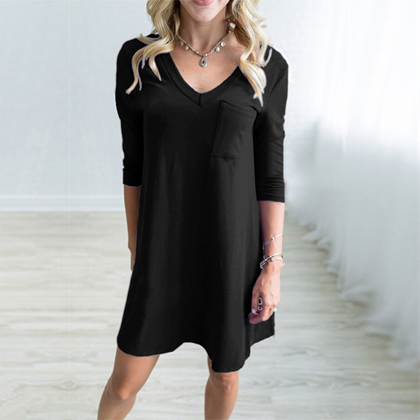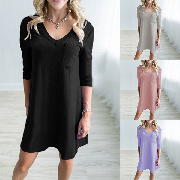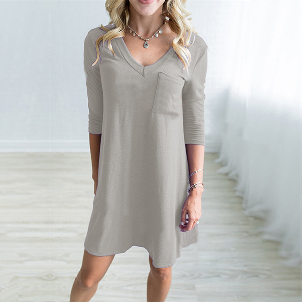 For example this dress. Solid color style,designed with 3/4 sleeve,v-neck and a chest patch pocket,simple in