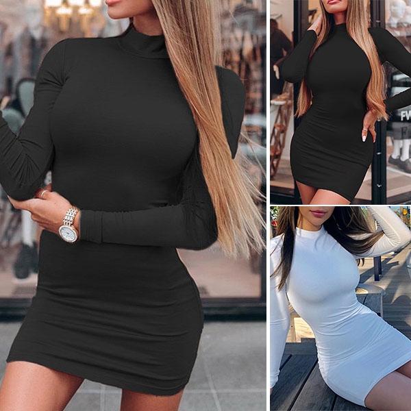 long sleeve,mock neck and a tight silhouette,this dress can display your sexy and seductive curve.