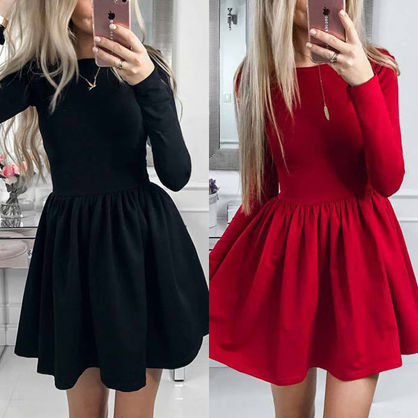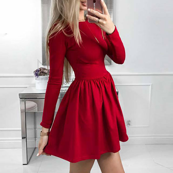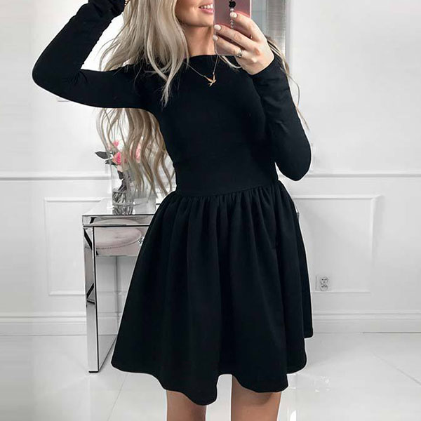 This versatile dress is both fit for your work days and casual weekends. Solid color style,designed with long sleeve,