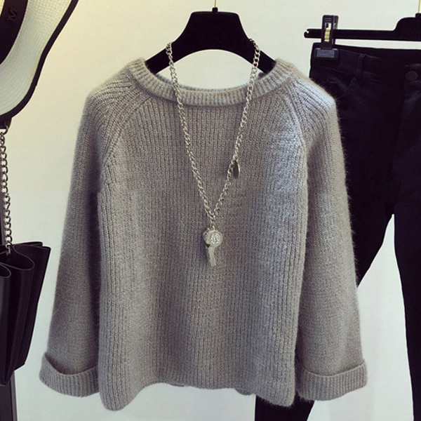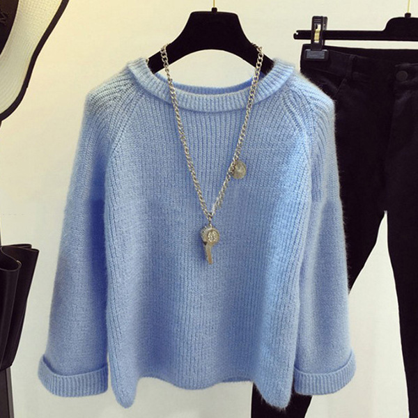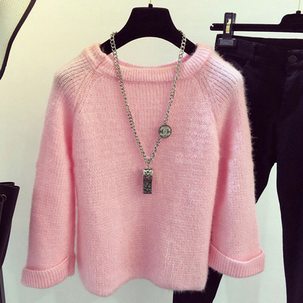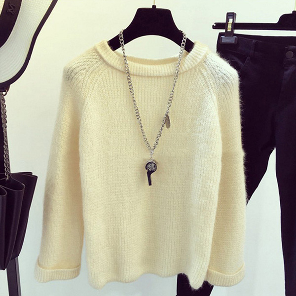 Simple Style Long Sleeve Round Neck Solid Color Sweater