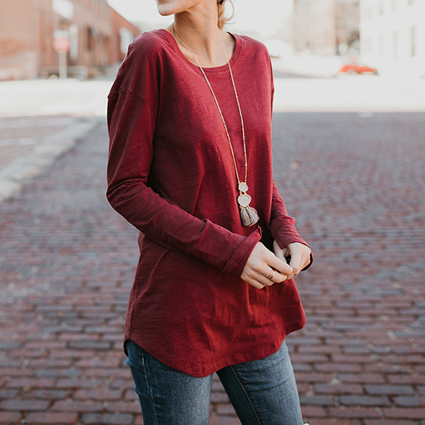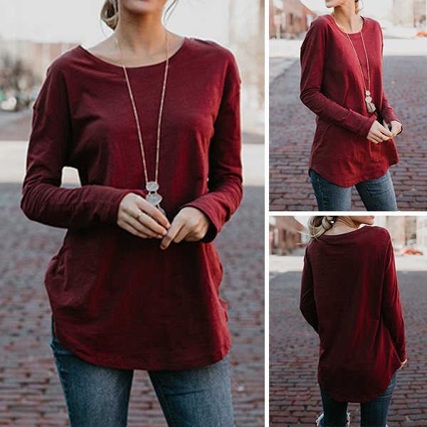 Solid color style,crafted from soft and breathable fabric,with long sleeve and round neck design,this wonderful piece