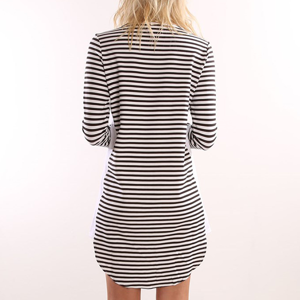Striped style,designed with long sleeve,round neck and crafted from soft and breathable fabric,this dress gives you