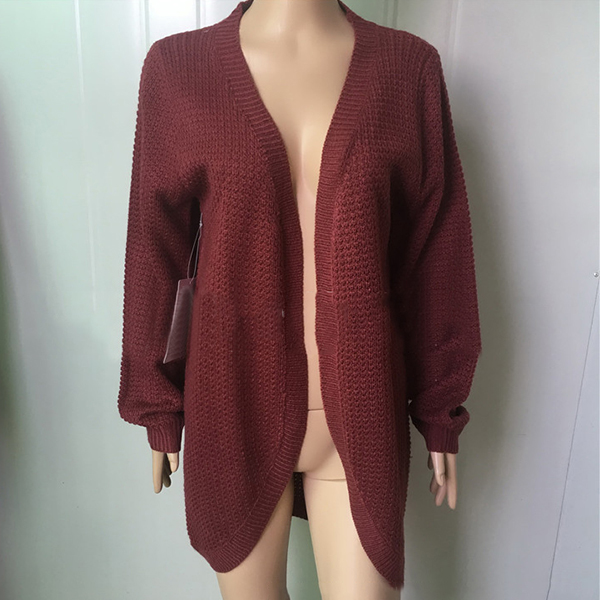 Simple Style Long Sleeve Solid Color Loose Knit Cardigan