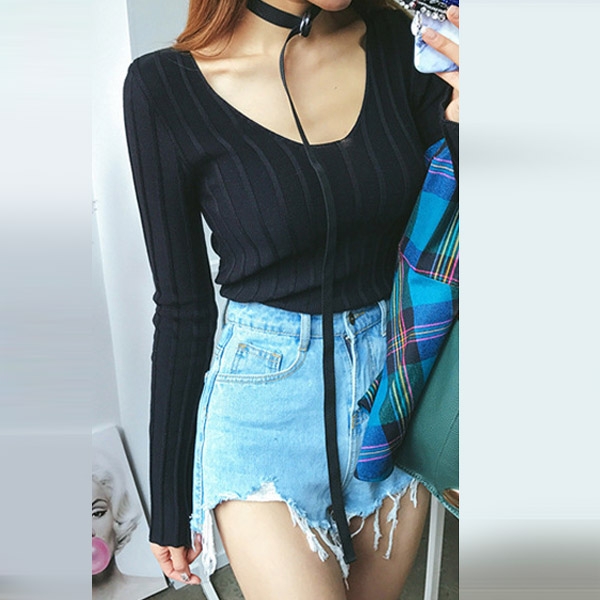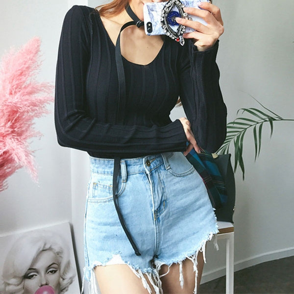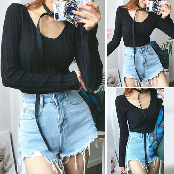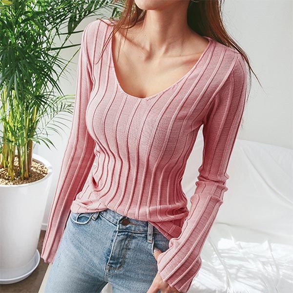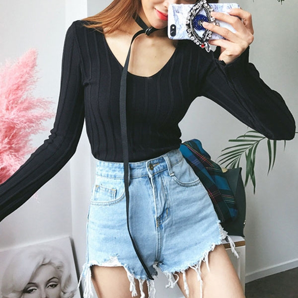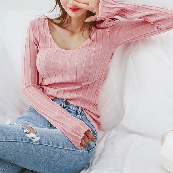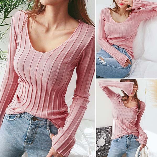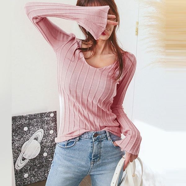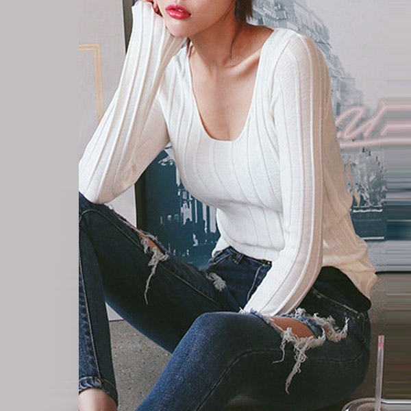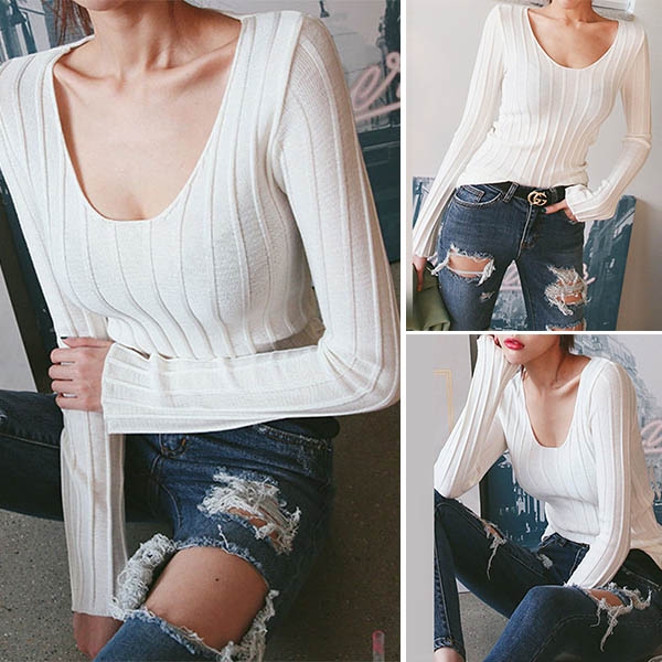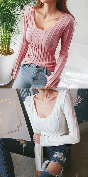 Simple style piece is always more popular,this knit top is a good example. It boasts a solid color,finished with long sleeve,U-neck and a clean silhouette,