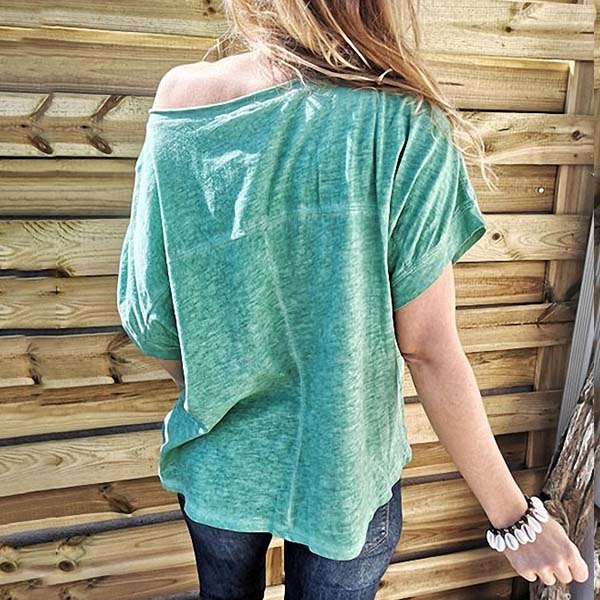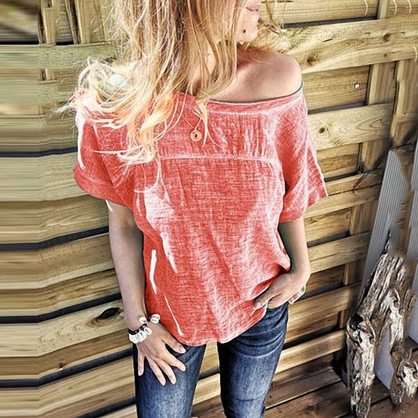 this t-shirt! It boasts a solid color,with short sleeve and a boat neck,simple in design style but it can