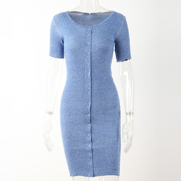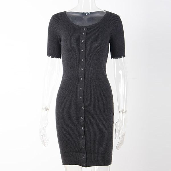 color tone,finished with short sleeve,round neck and a fit silhouette,this wonderful knit dress