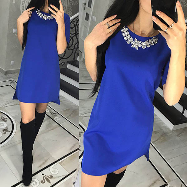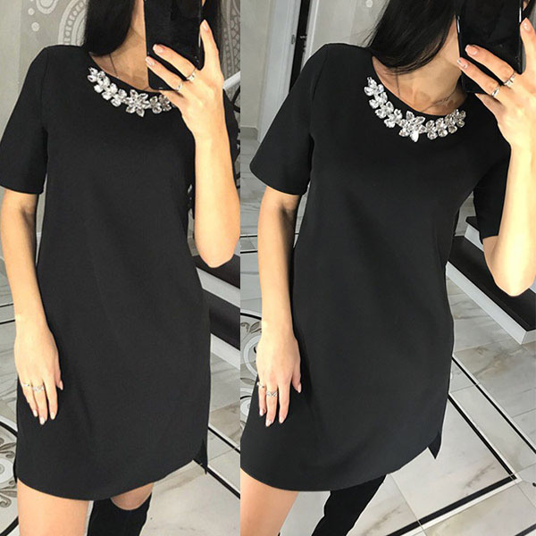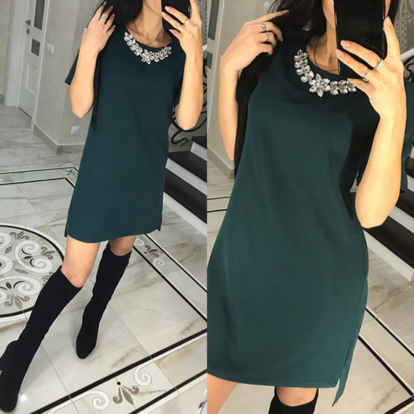 a solid color,finished with short sleeve,round neck and a simple silhouette,this dress can give you a