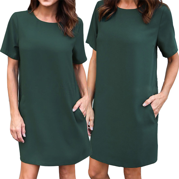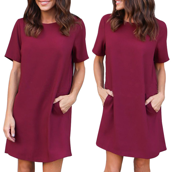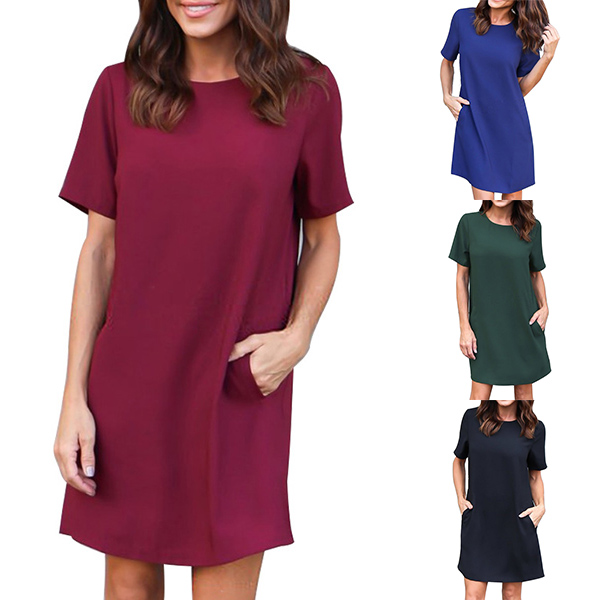 designed with short sleeve,round neck,loose silhouette and soft fabric,this dress is a perfect combination of simple,