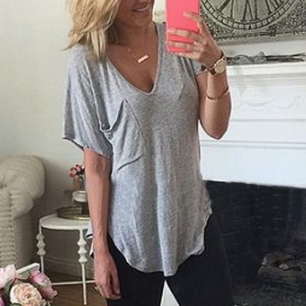 v-neck and a chest patch pocket,this t-shirt features simple,casual,cozy and stylish flavor.