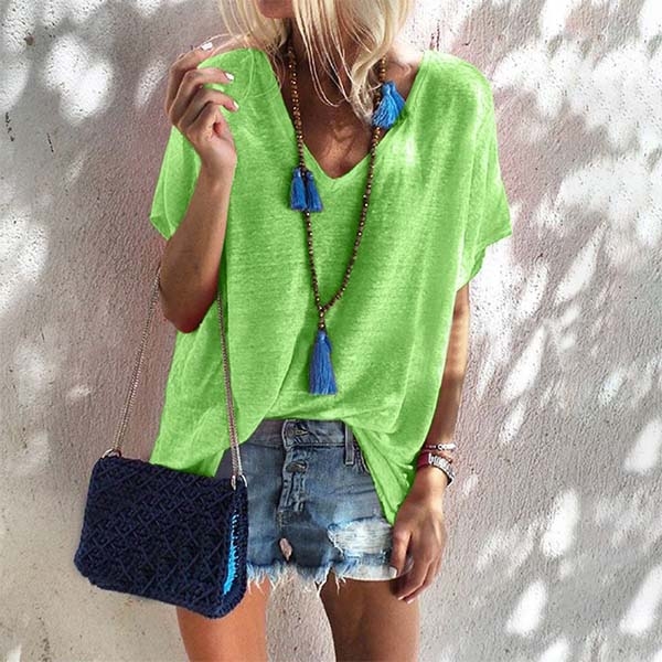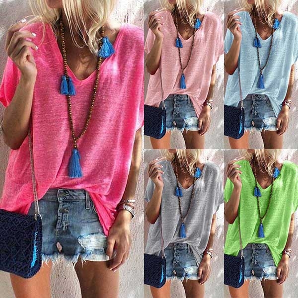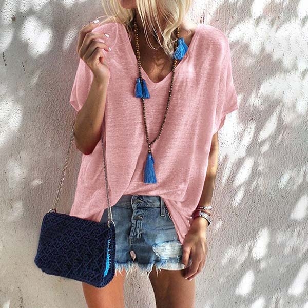 on those casual days. It is finished with solid color,short sleeve,v-neck and a loose silhouette,this t-shirt is