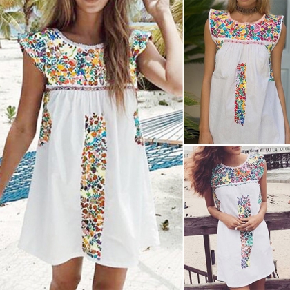 a loose silhouette,this dress is sure to give you a cool and comfortable day. On the other hand,its eye-catching floral
