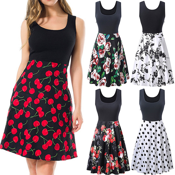 Plus,the printed spliced hem design makes this dress look more stylish and popular. Owning it is your wealth!