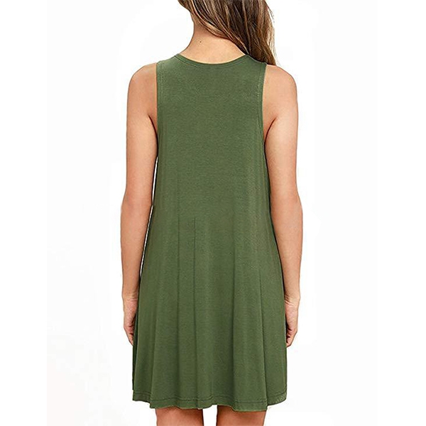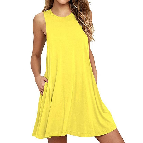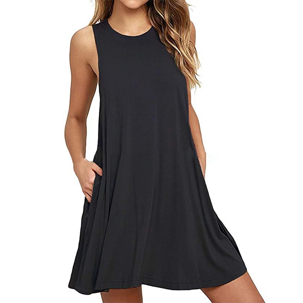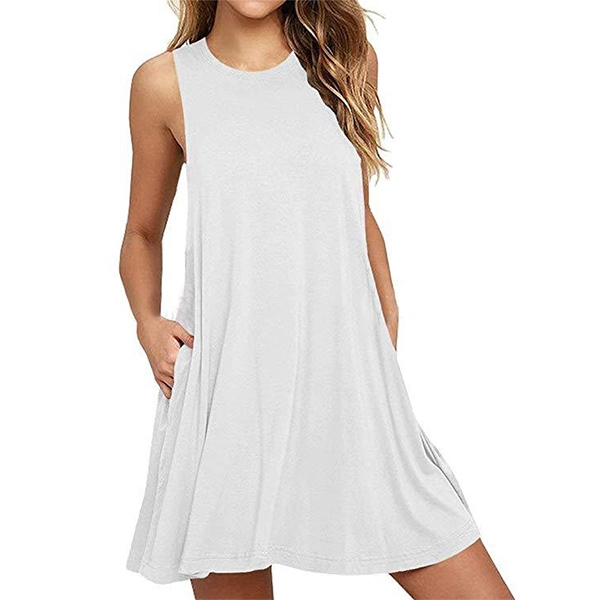 finished with sleeveless,round neck and a loose silhouette design,bearing a simple design style,but filled