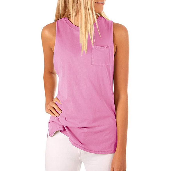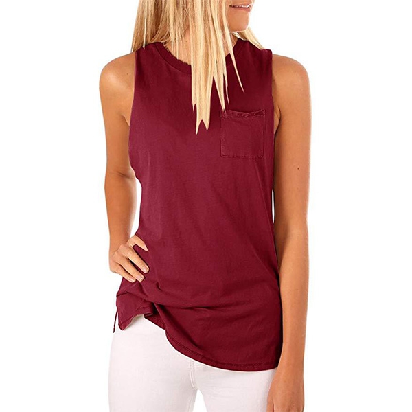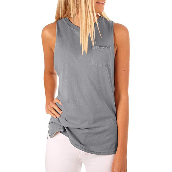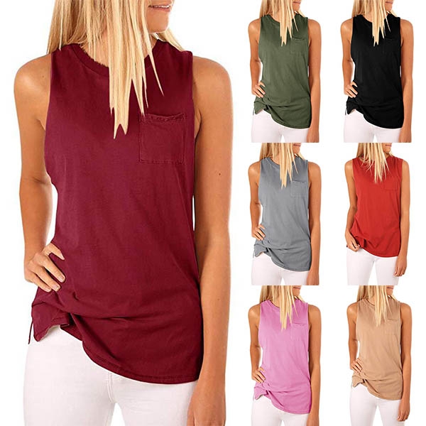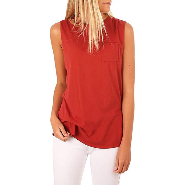 your wardrobe ensemble! It is crafted in a solid color,with sleeveless,round neck and a chest patch