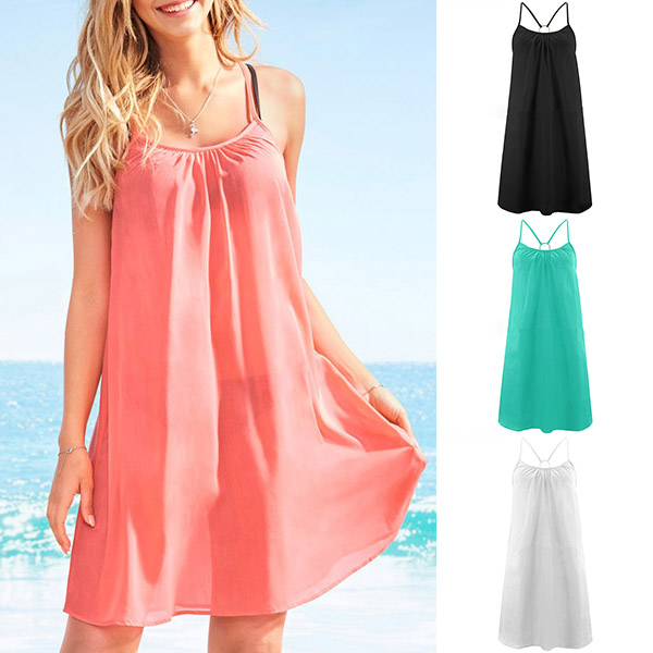 this sexy backless cami dress to experience different beach landscape. The concise figure styles cool