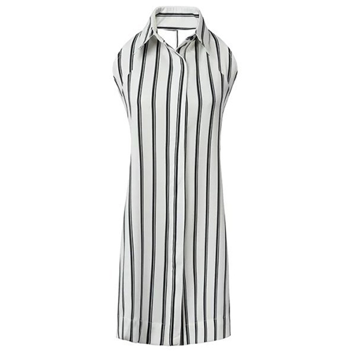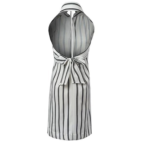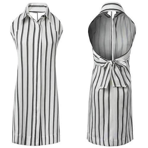 This dress is really stylish since it is sleeveless while it is also designed with a basic collar. Moreover, this dress is also printed with vertical stripes,