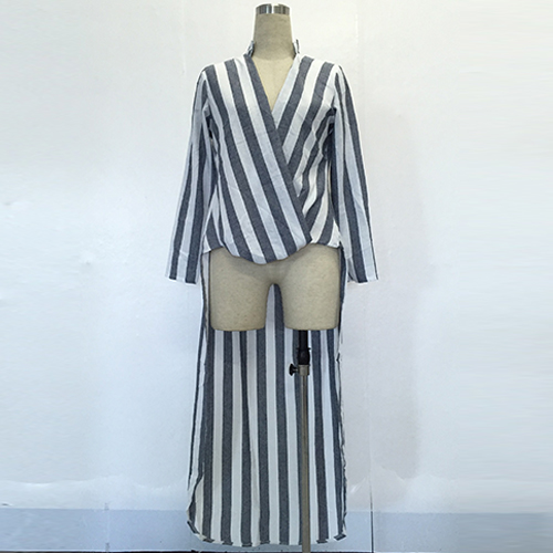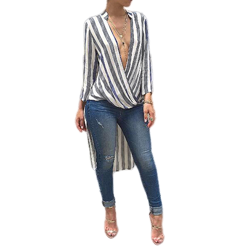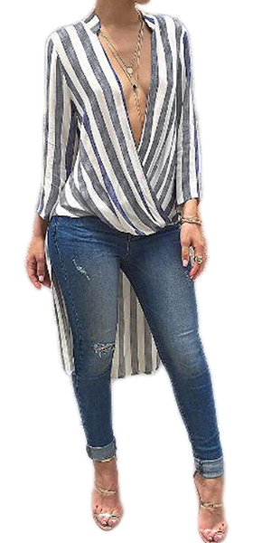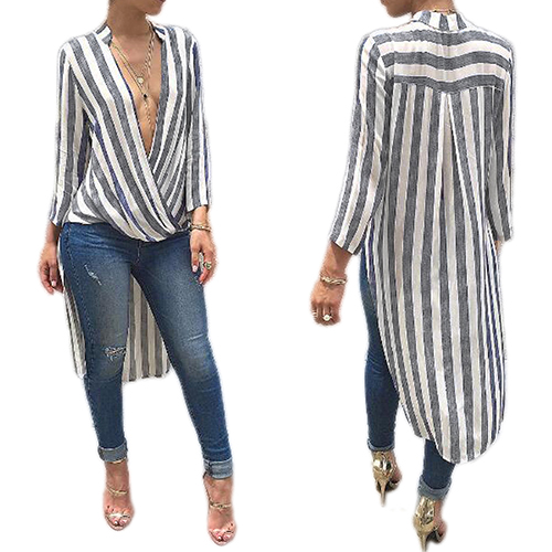 This longline top is designed with a deep v-neckline and long sleeves while it is styled with a surplice