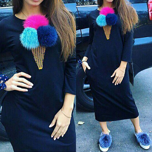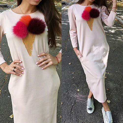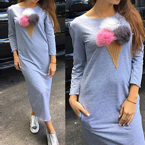 This midi dress features long sleeve, round neck and floral printed design, add some full cones as ice cream for