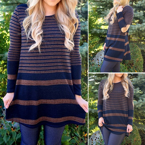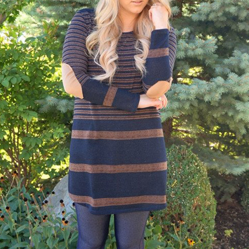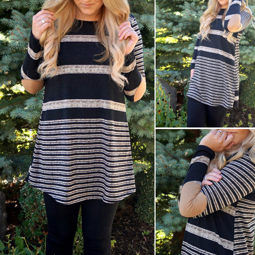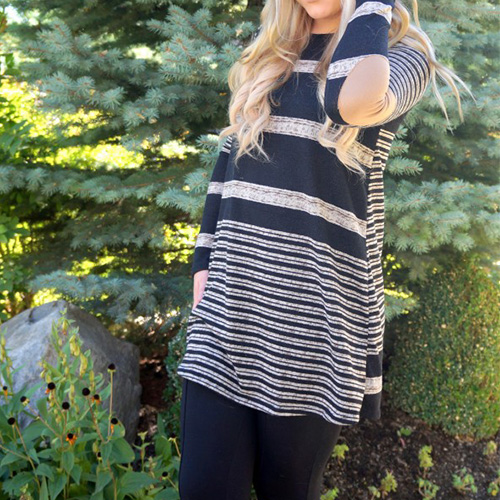 Striped style, with round neck, long sleeve and a relaxed silhouette design, this piece can make you