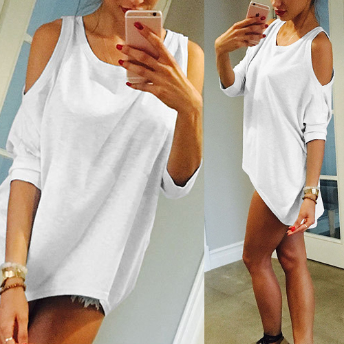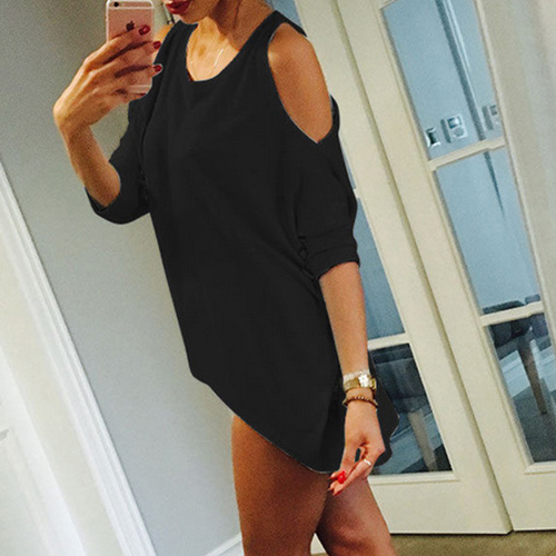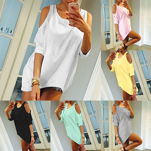 Solid color style, adding round neck, 3/4 sleeve, cold shoulder and high-low hemline design, this tops can