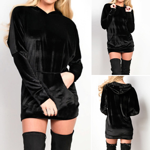 Stylish Solid Color Front Pocket Long Sleeve Hooded Women's Sweatshirt