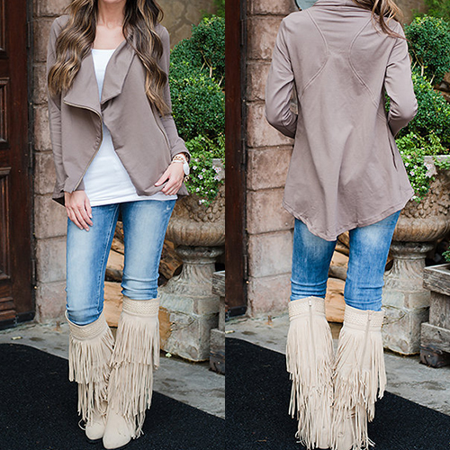 warm and cozy autumn. 2 side pockets and irregular hemline designs also add some extra fashion sense.