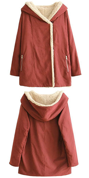 This piece boasts solid color, 2 zipper pockets, long sleeve and hooded design, which