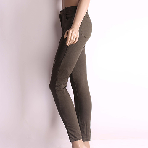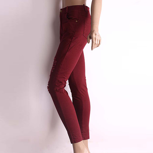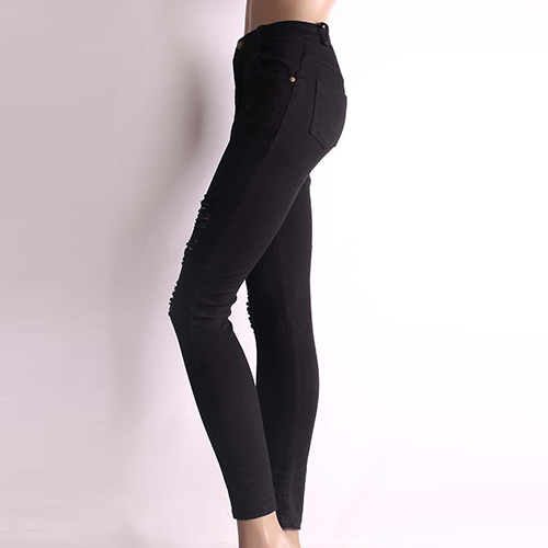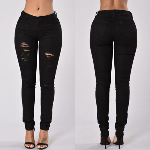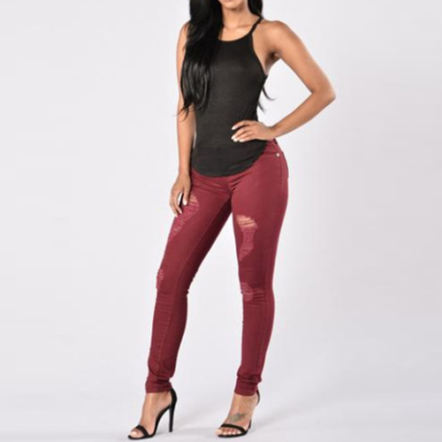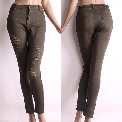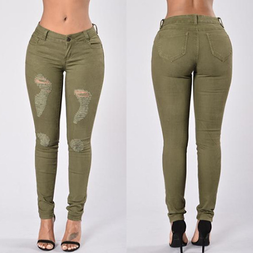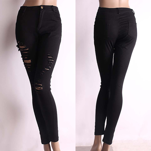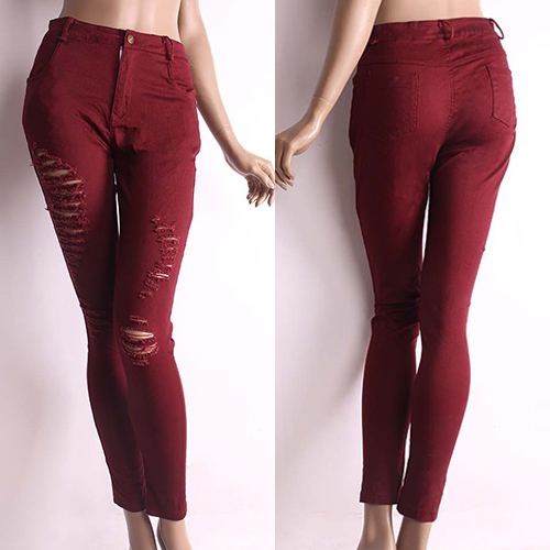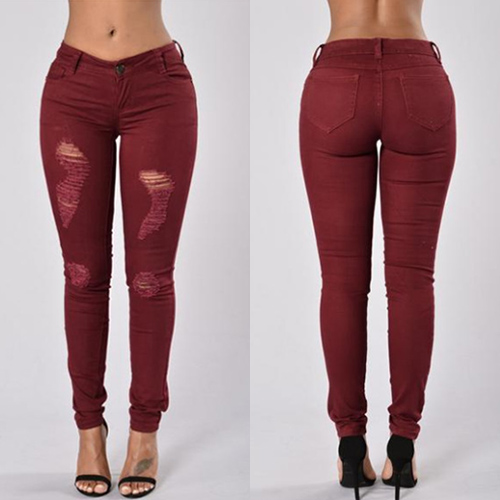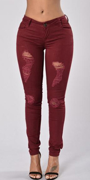 silhouette, with solid color, ripped and zip fly design, this piece can perfect highlight your slender