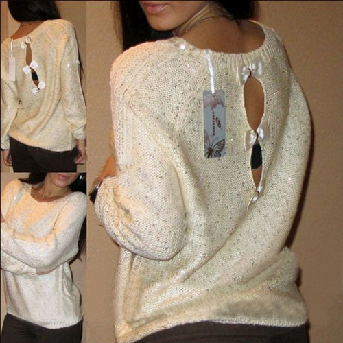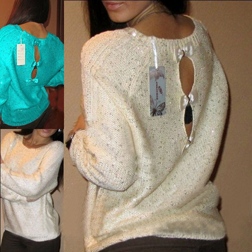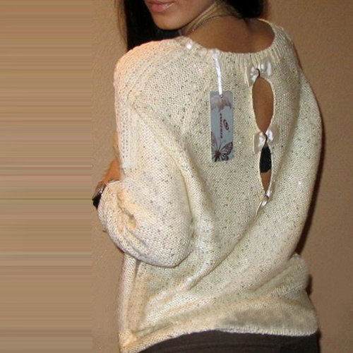 Sweet Bowknot Long Sleeve Round Neck Loose Knit Sweater