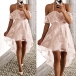 You are so charmimg with this dress.Contrast Color style,with off-shoulder and backless,which can