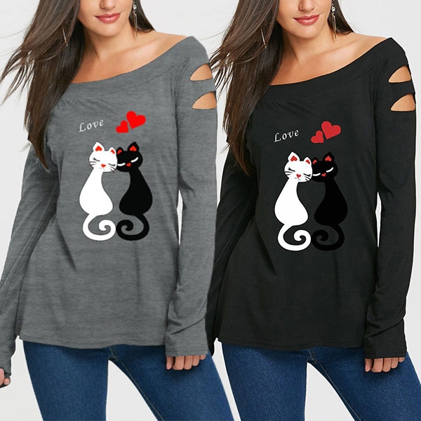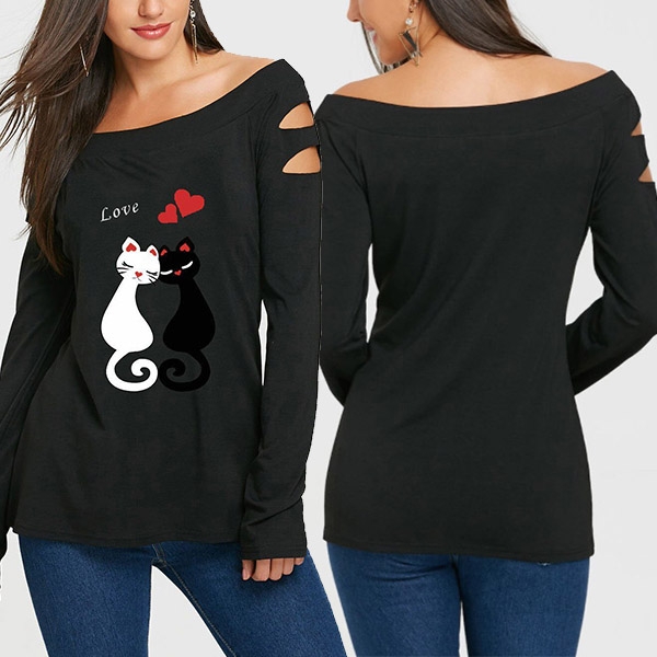 sleeve as well as hollow out design giving it a chic and pretty look. Comes with a kitty printed pattern can