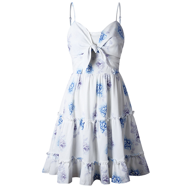 Double shoulder straps with sleeveless,a rounded hem with lotus in the sides.Exquisite printed