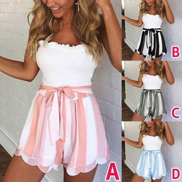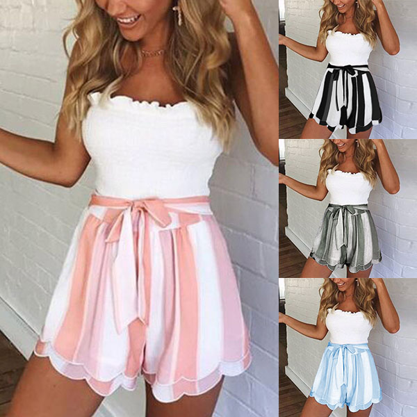 fashionble jumpsuit will help you attain it.Contrast color style , with striped and bowknot design,