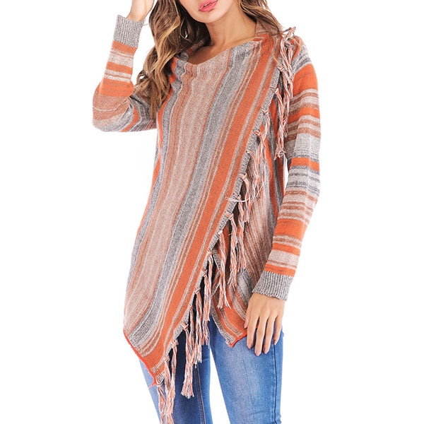 Contrast color style,accompanied with long sleeve and a tassels style ,