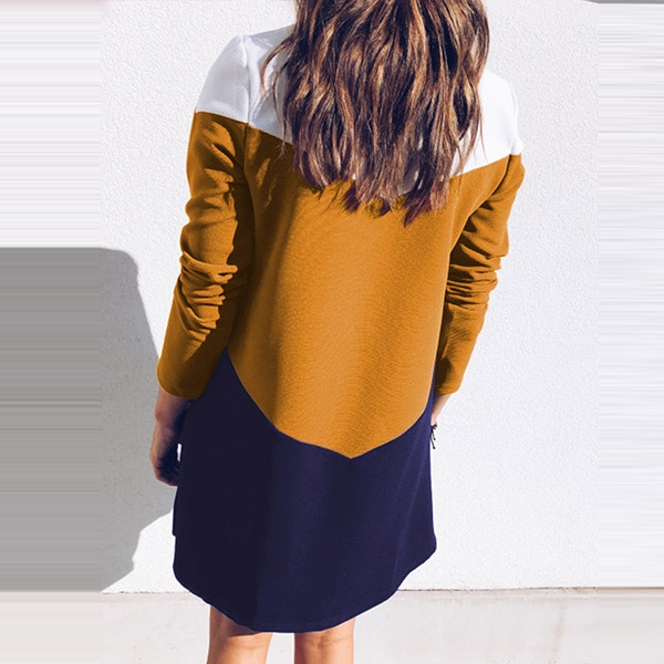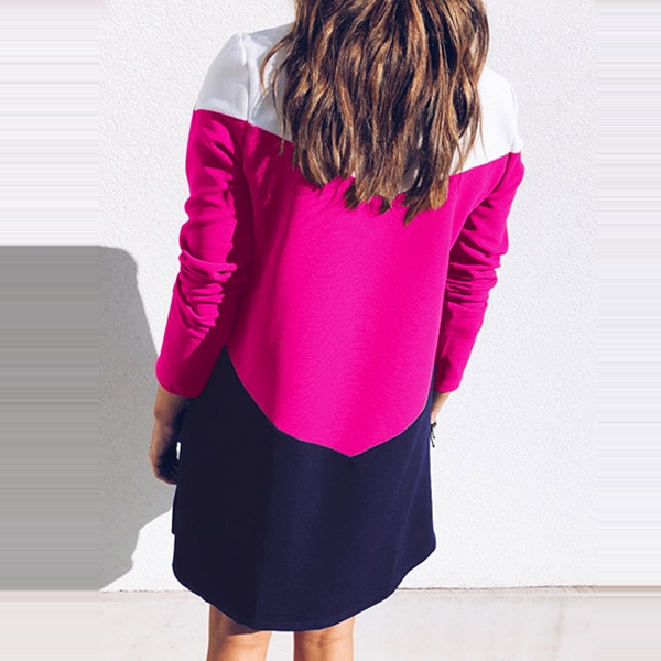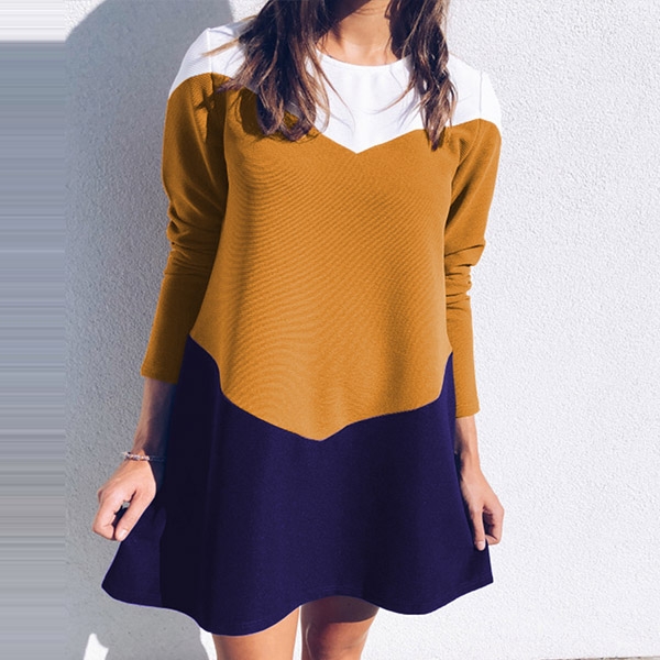 Thanks to the fit silhouette design,you can showcase your perfect curve in this dress. Contrast color