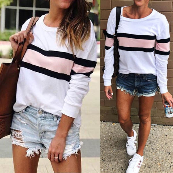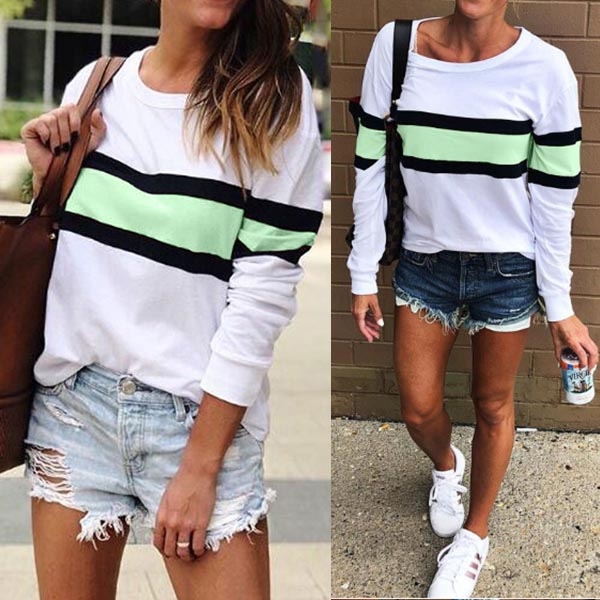 with round-neck,long sleeve and striped design, which can give you a charming silhouette.