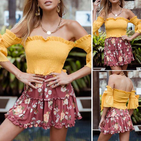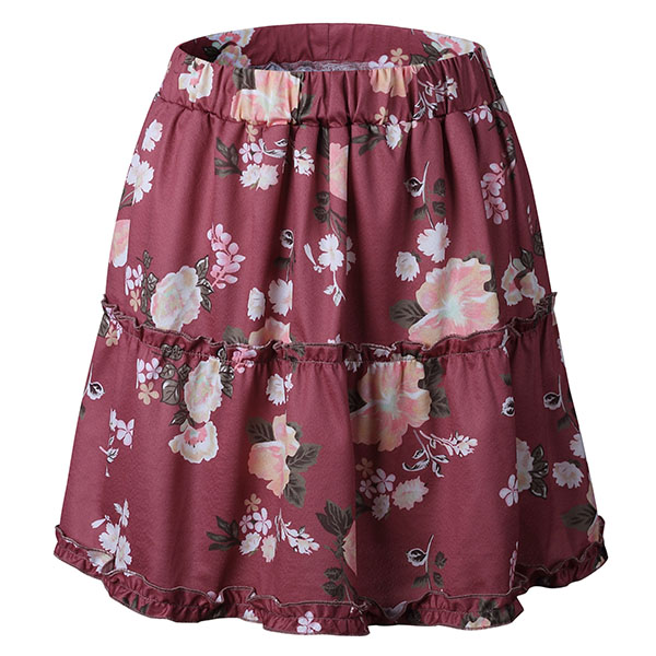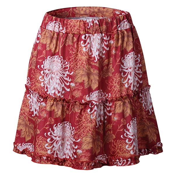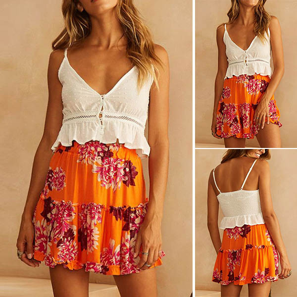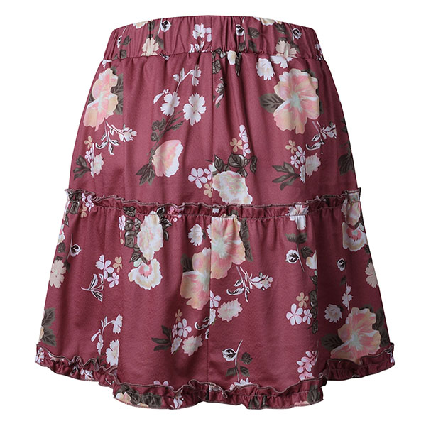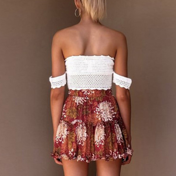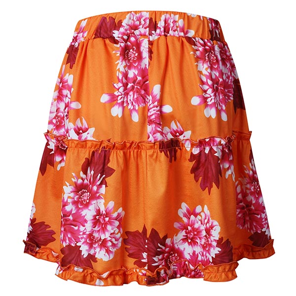 Sweet Contrast Color Ruffle Hemline Splied Printed Short Dress