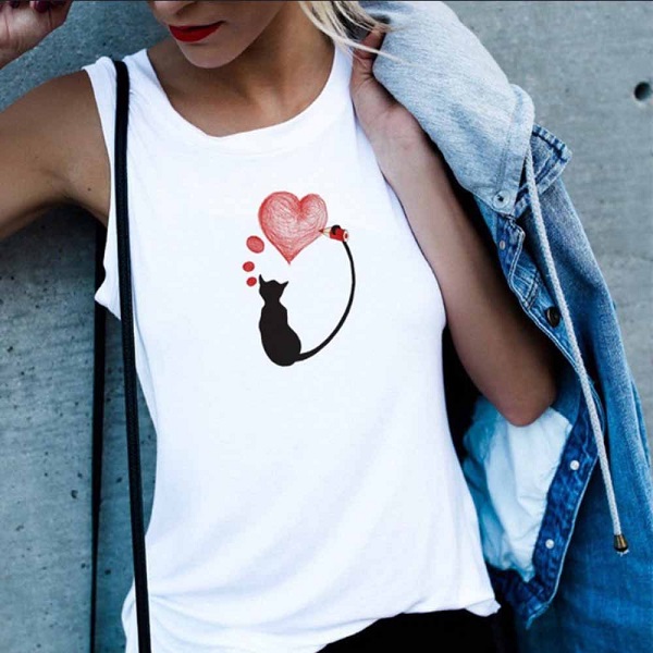 It designs with sleeveless,deep v-neck and a lovely kitty printed pattern at the appearance of the vest,