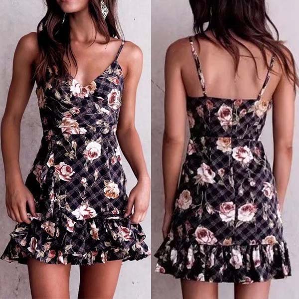 This is a simple and concise dress.Sleeveless and ruffle hemline design will makes you more seductive.