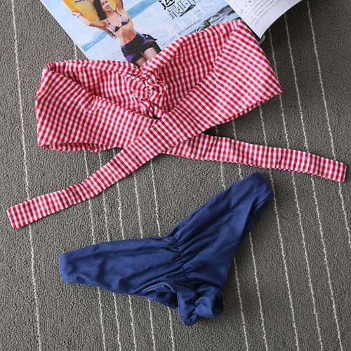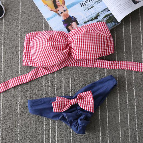 How to combine the sexy but sweet flavor with stylish style? This bikini did. Including a grids bra and a bowknot briefs, with unique and vogue design,