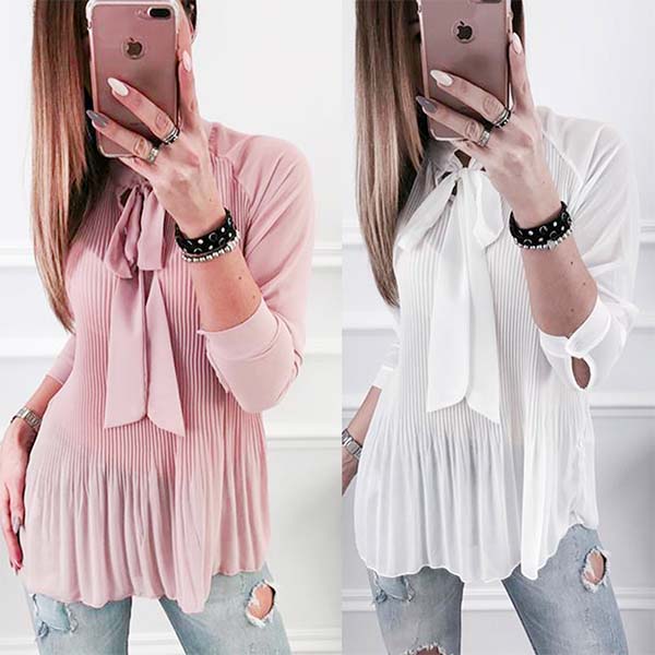 bowknot design at neckline part make this piece look so attractive,and the pleated design will further enhance